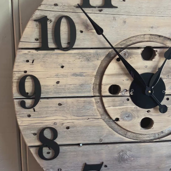 Bring rustic charm to your home with our 30" 3D Rustic Spool clock! This unique piece features laser engraved numbers and a sturdy sawtooth hanger for easy wall mounting. Its hand-painted black finish adds a sleek touch to any room. Make a statement with this eye-catching clock today!