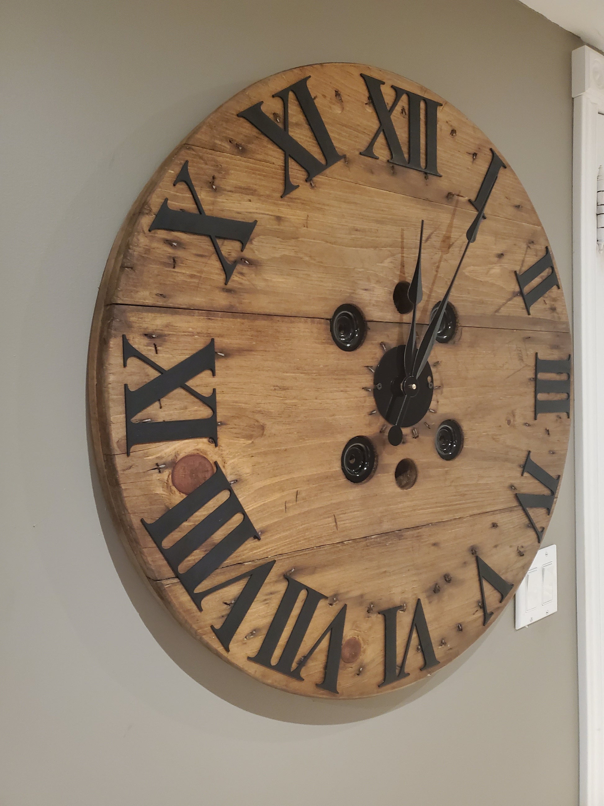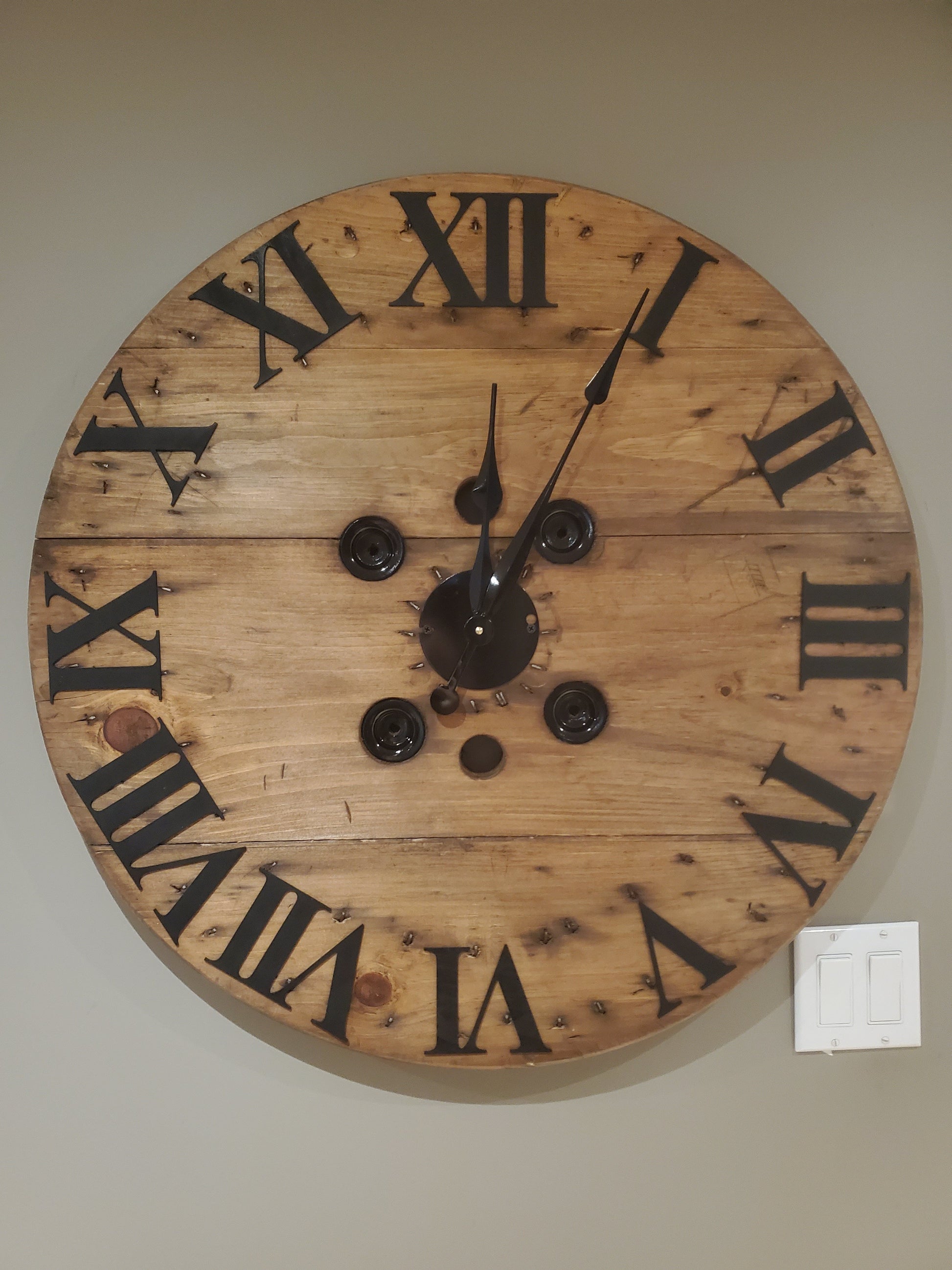 30" Spool clock- 3D wood roman numerals
