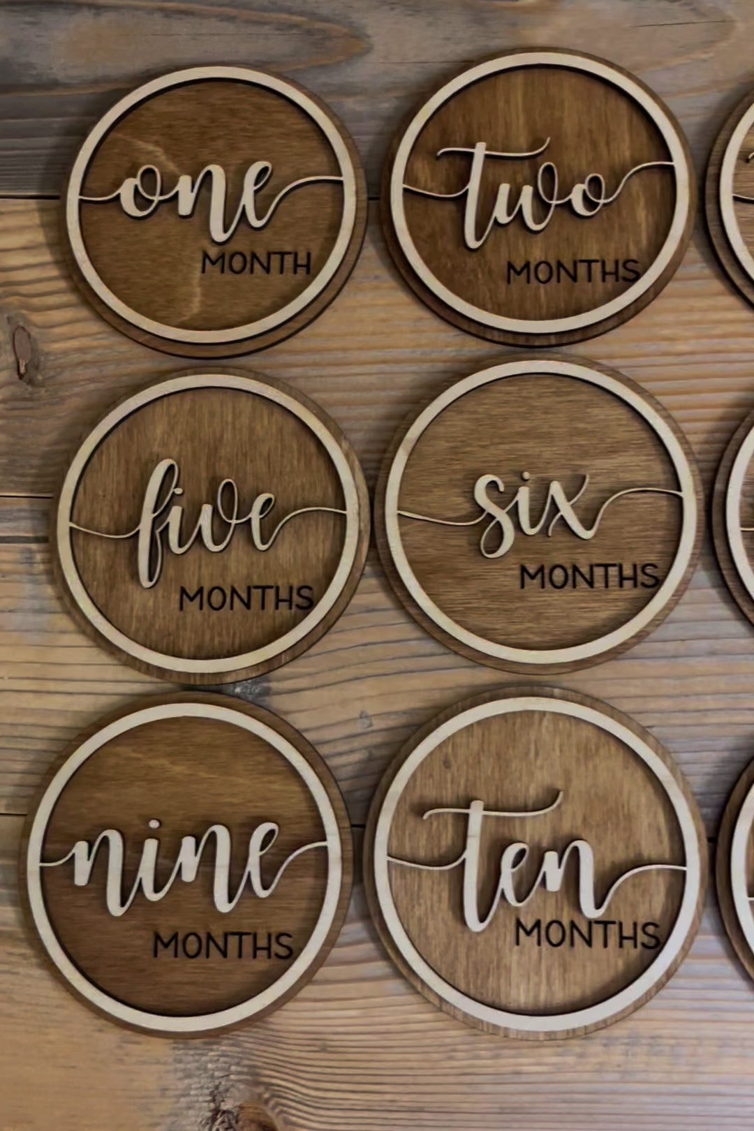 Capture the precious moments with our 3D Baby Milestones set! Made of durable birch wood, stained special walnut. Set of 12 laser cut milestones adds an elegant touch to your baby's first year. Cherish the memories as you document each milestone. Makes a perfect gift for new parents!