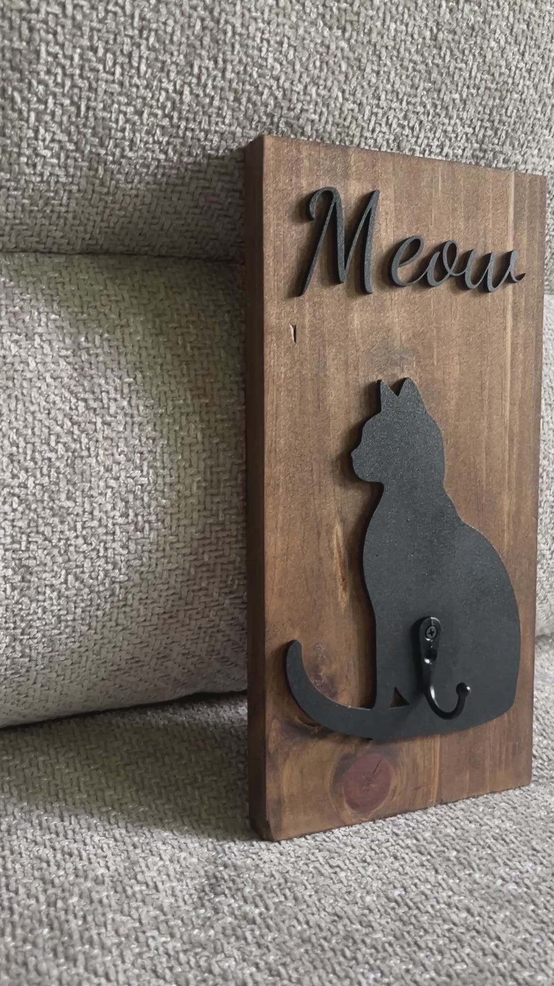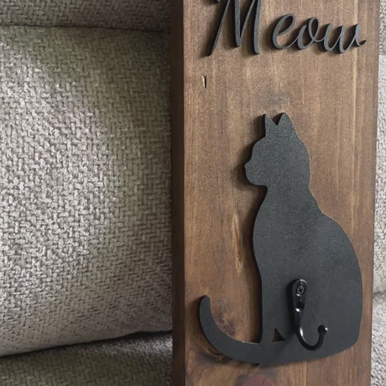 Our cat leash holder keeps your pet's leash neatly organized. Say goodbye to tangled messes and lost leashes. Made of 3D wood cutout, this unique holder is a necessary tool for all pet owners. (Your furry friend will appreciate it!)