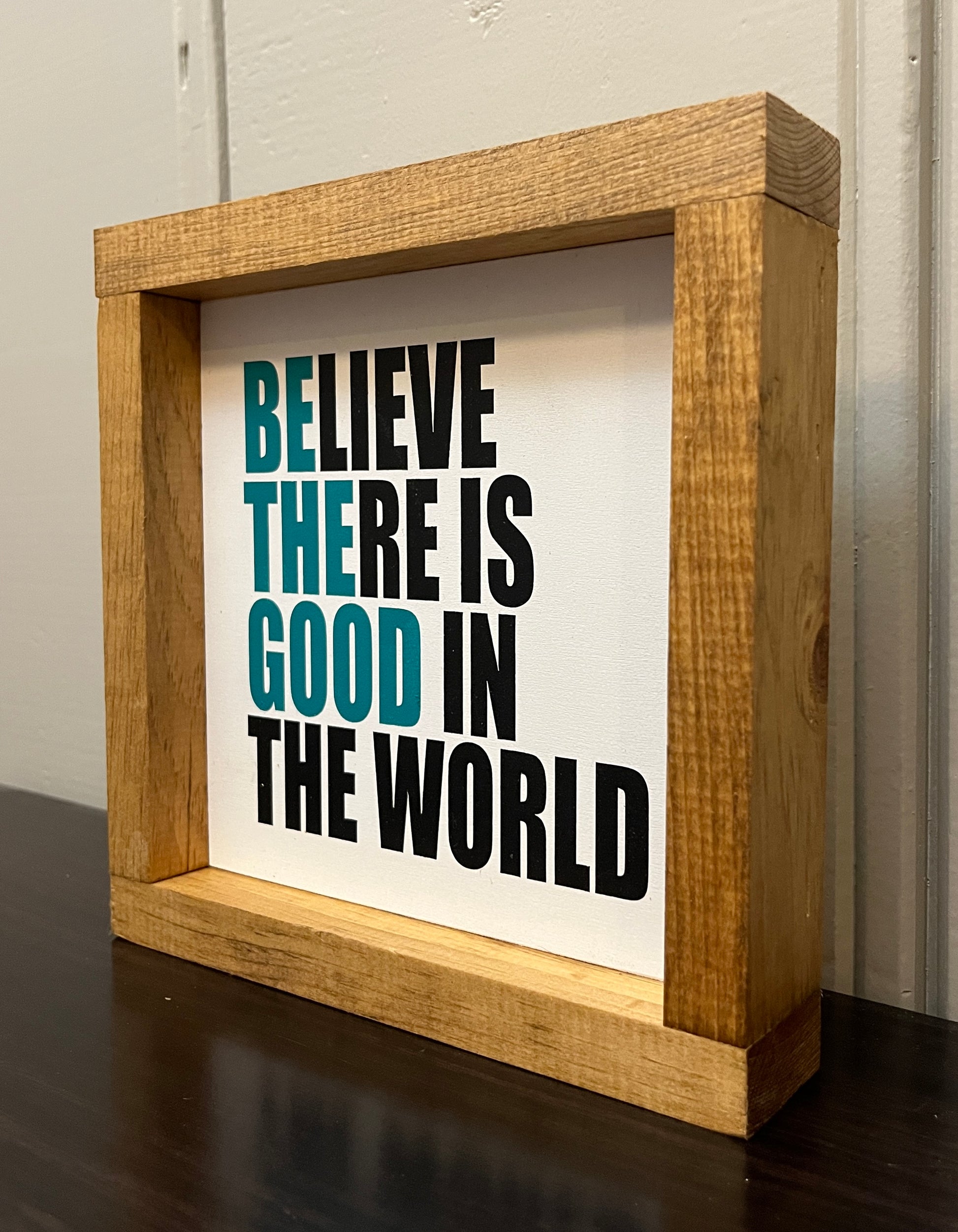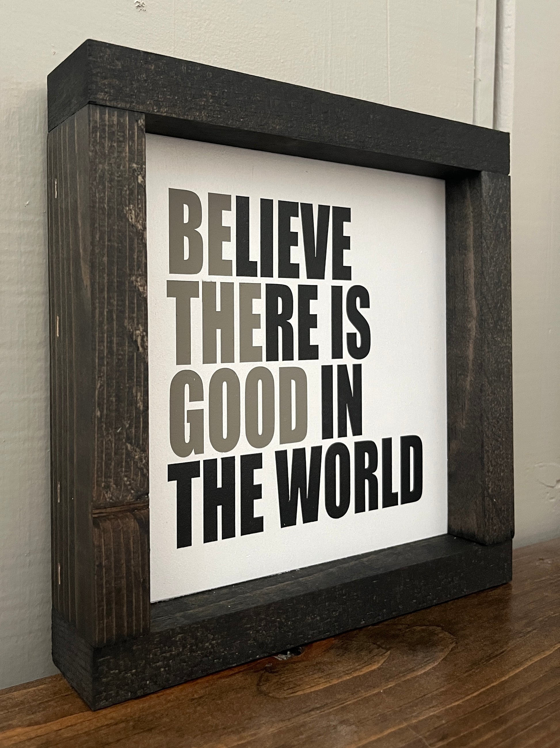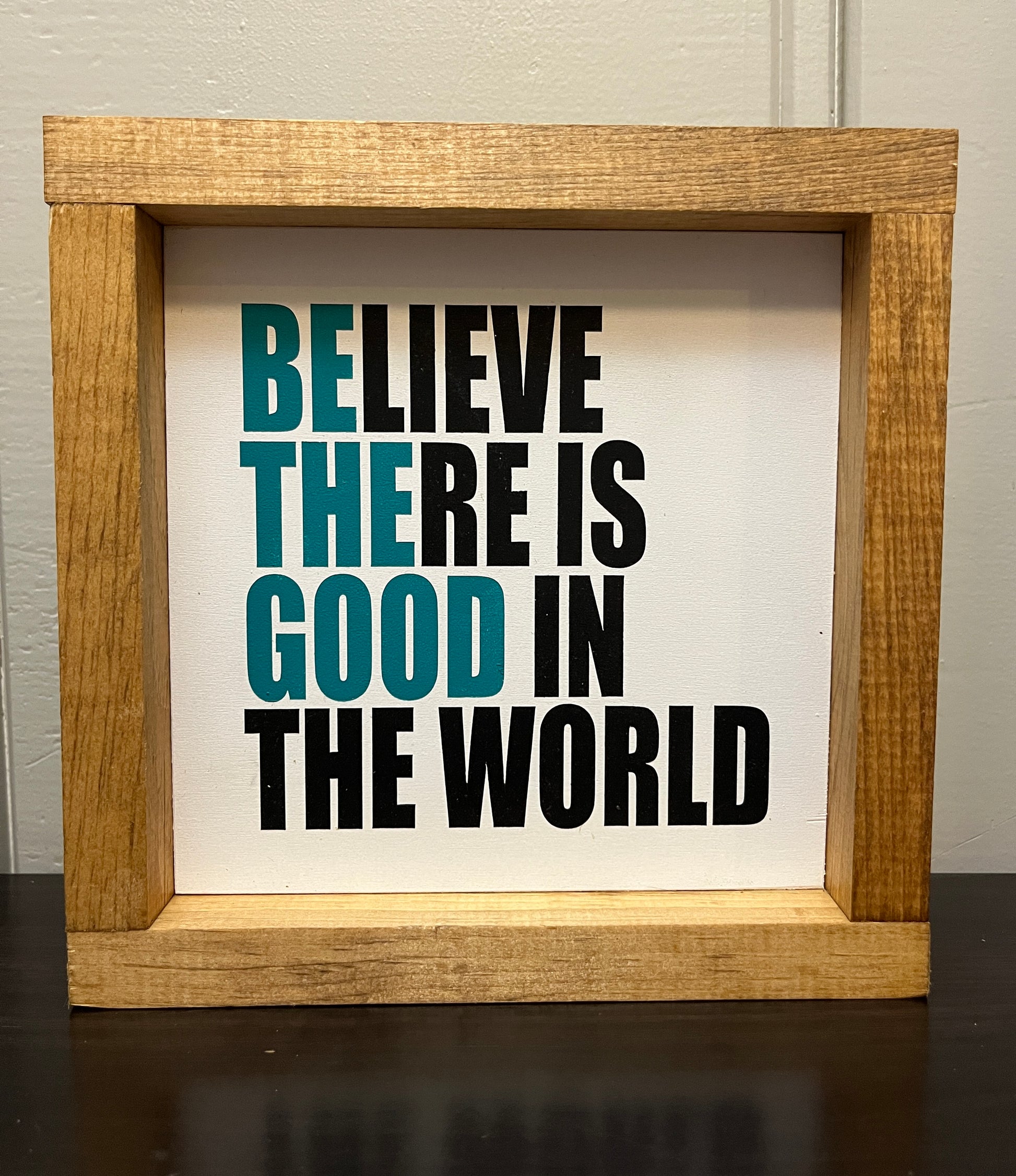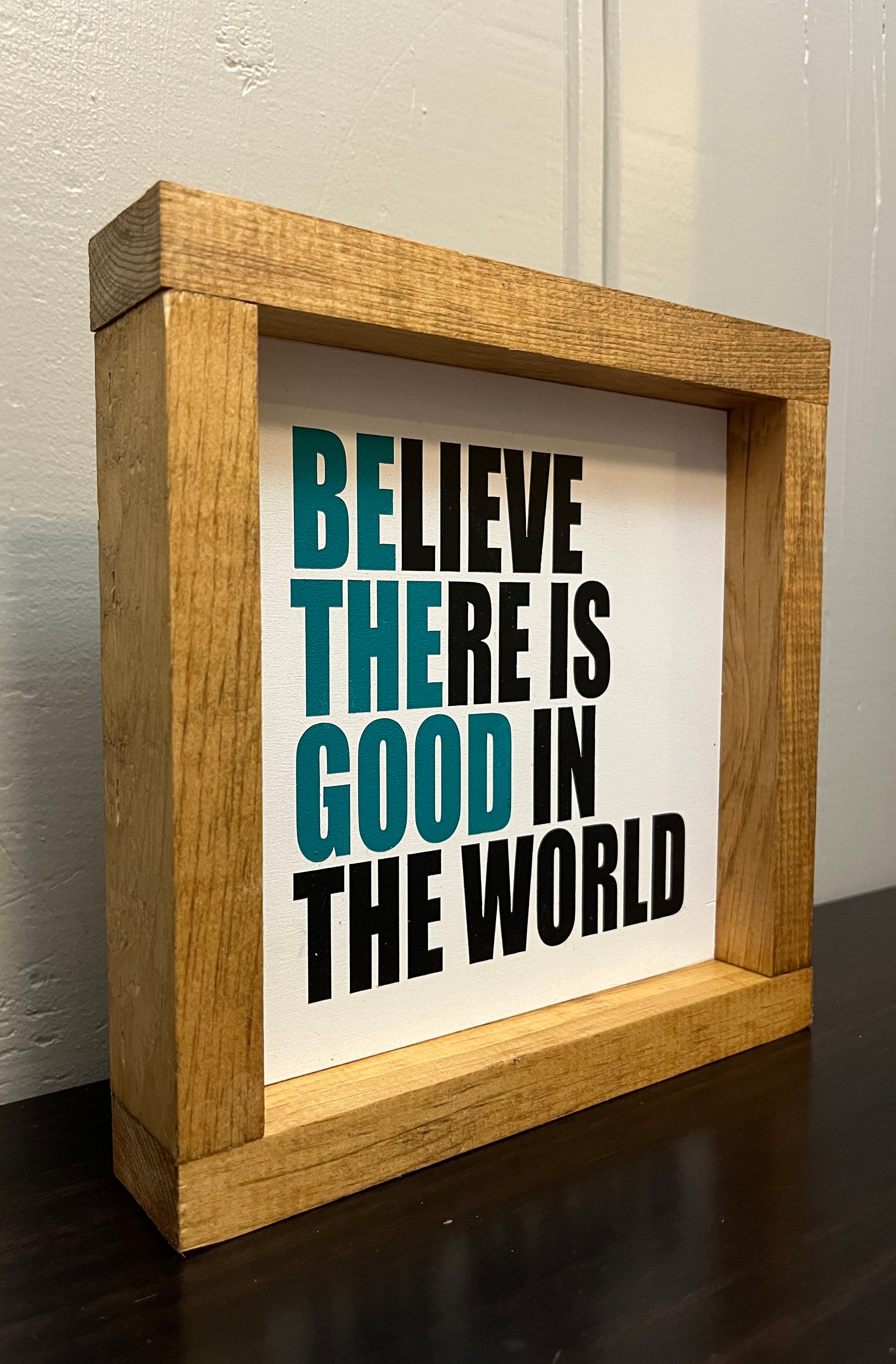 Introducing our exquisite handmade picture hanger, "Be the good in the world." Crafted with care, this stained measures 8" x 8" With a convenient sawtooth hanger on the back, it's effortlessly ready to grace your walls. Ideal for showcasing your precious moments, this piece is designed to be unforgettable.