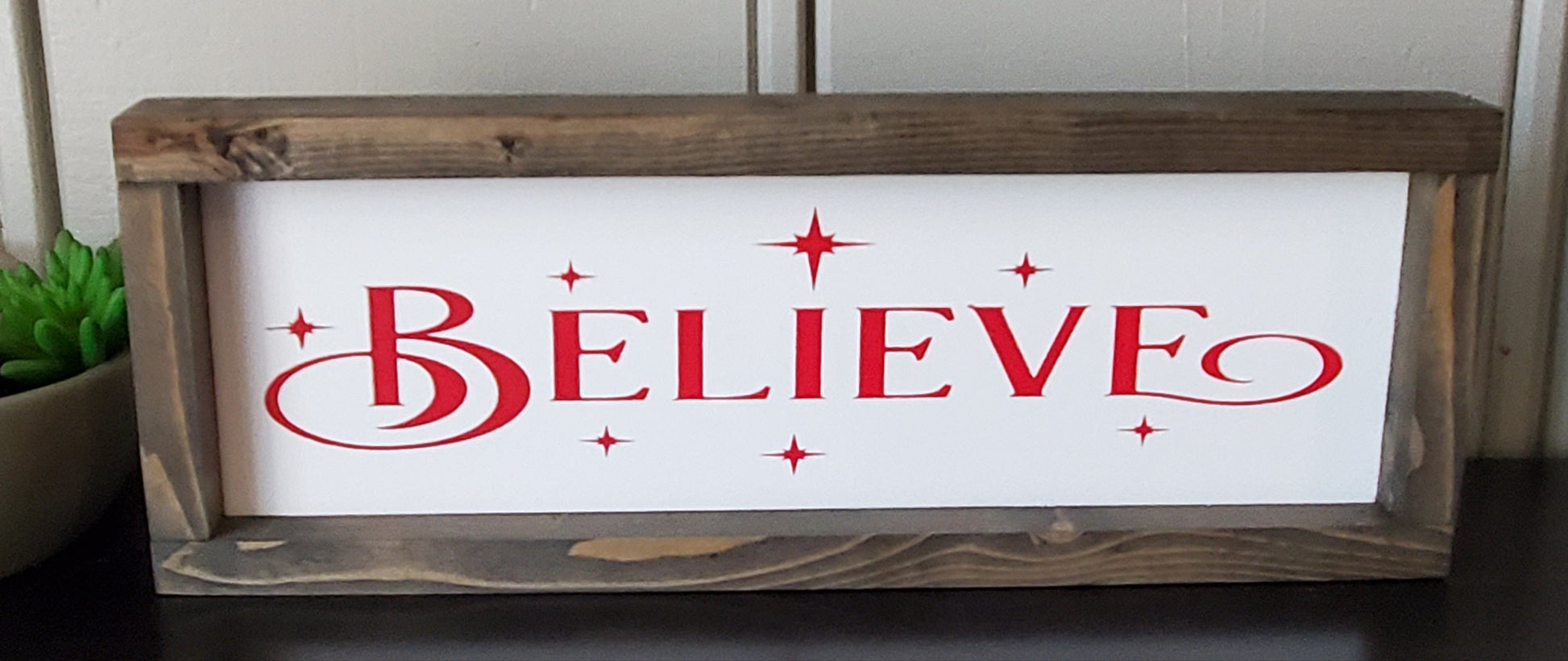 Believe Christmas sign - Stained Ebony 15.5" x 5.5"