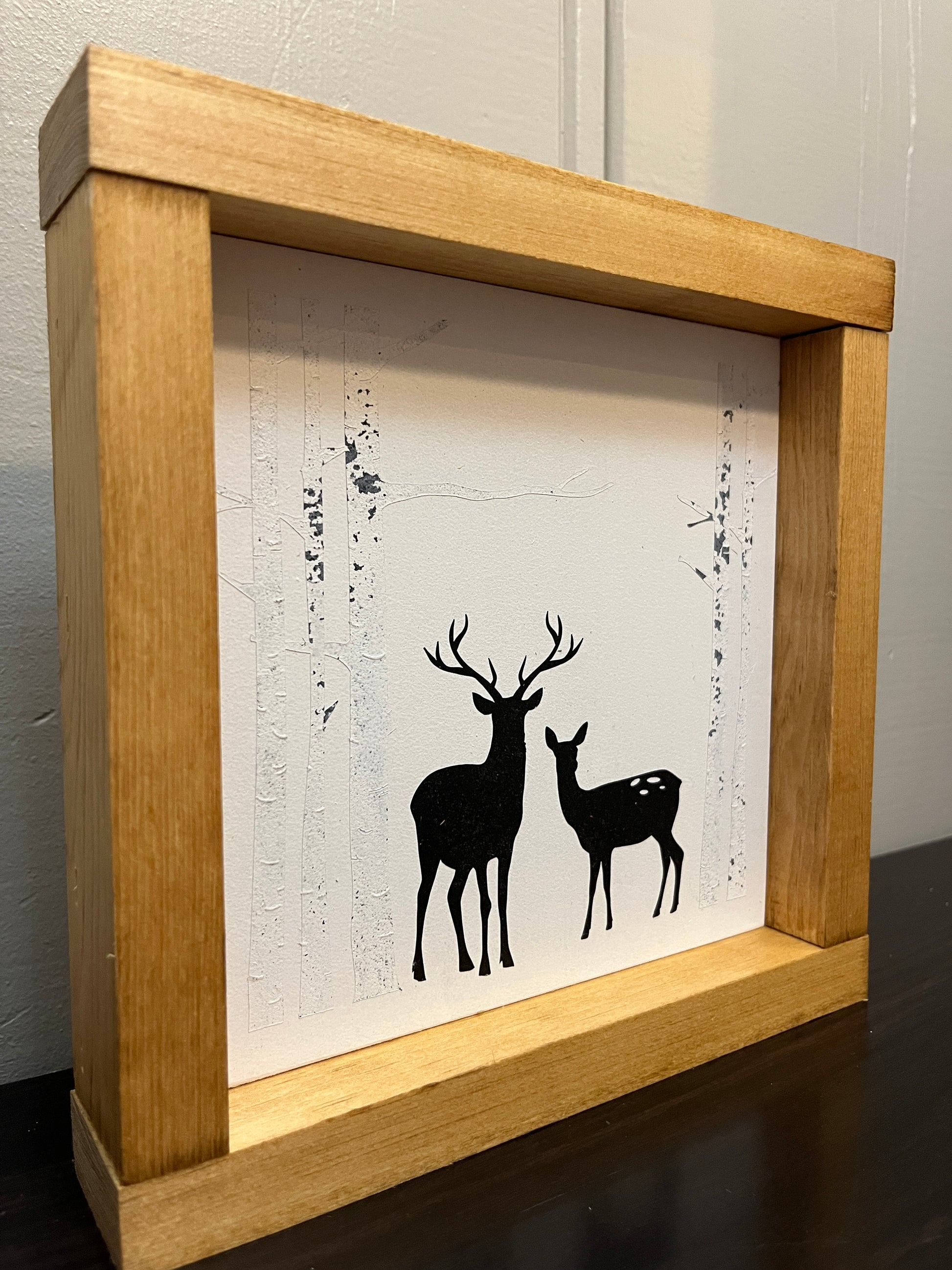Bring rustic elegance to your holiday décor with this charming 8" Christmas deer sign. Featuring a graceful deer silhouette nestled among delicate birch trees, this piece captures the serene beauty of a winter woodland scene. Crafted with meticulous attention to detail, the design evokes a sophisticated, nature-inspired aesthetic perfect for modern farmhouse or traditional interiors. The convenient sawtooth hanger on the back allows for effortless wall display. An ideal accent for mantels, entryways, or gallery walls during the festive season and beyond.