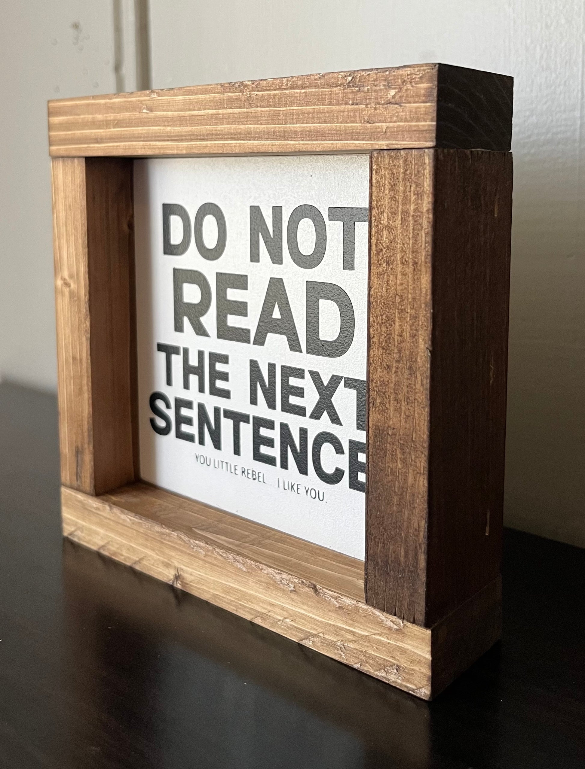 Embrace your rebellious side with our "Do not read the next sentence" product! Measuring at a rebelliously small 6 x 6 inches, this product challenges the status quo and promotes individuality. Perfect for those who don't take themselves too seriously and enjoy a little humor in their lives.