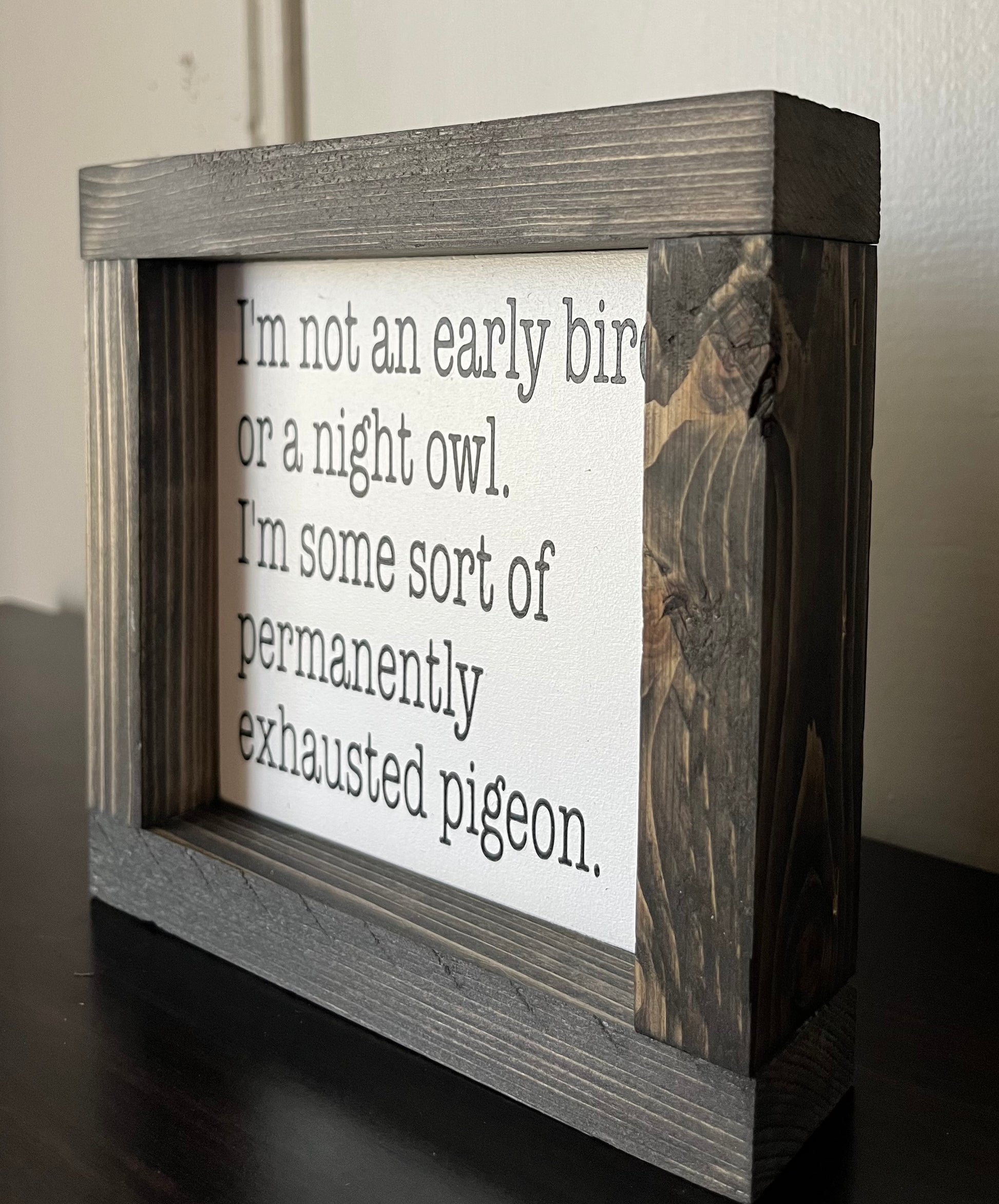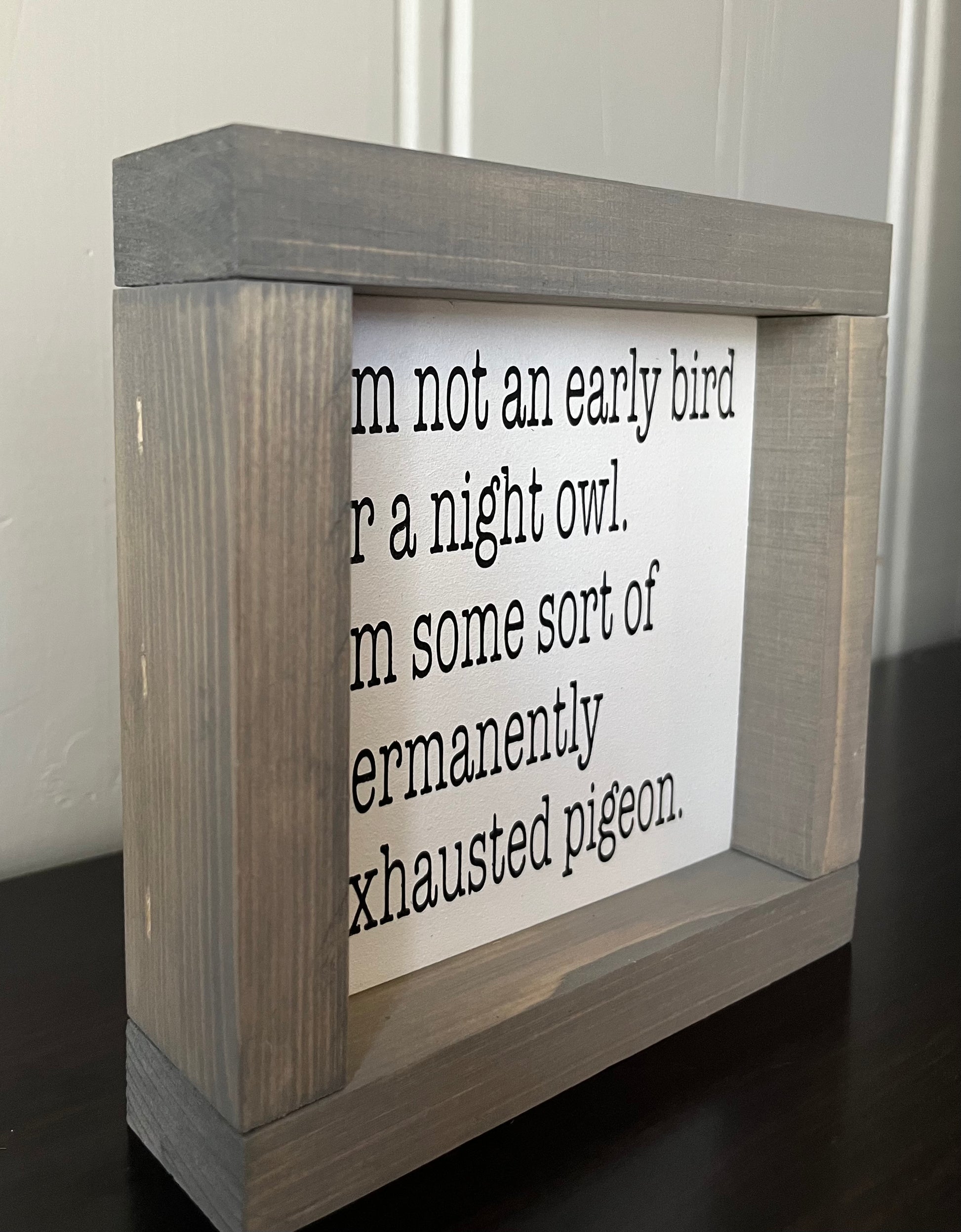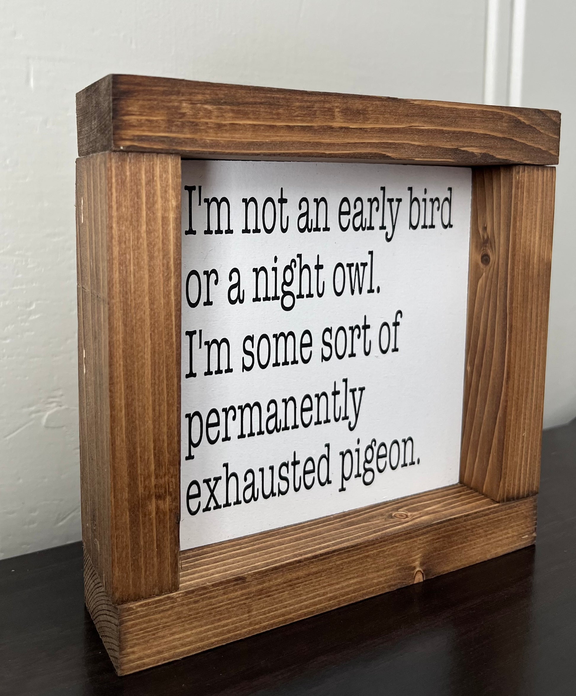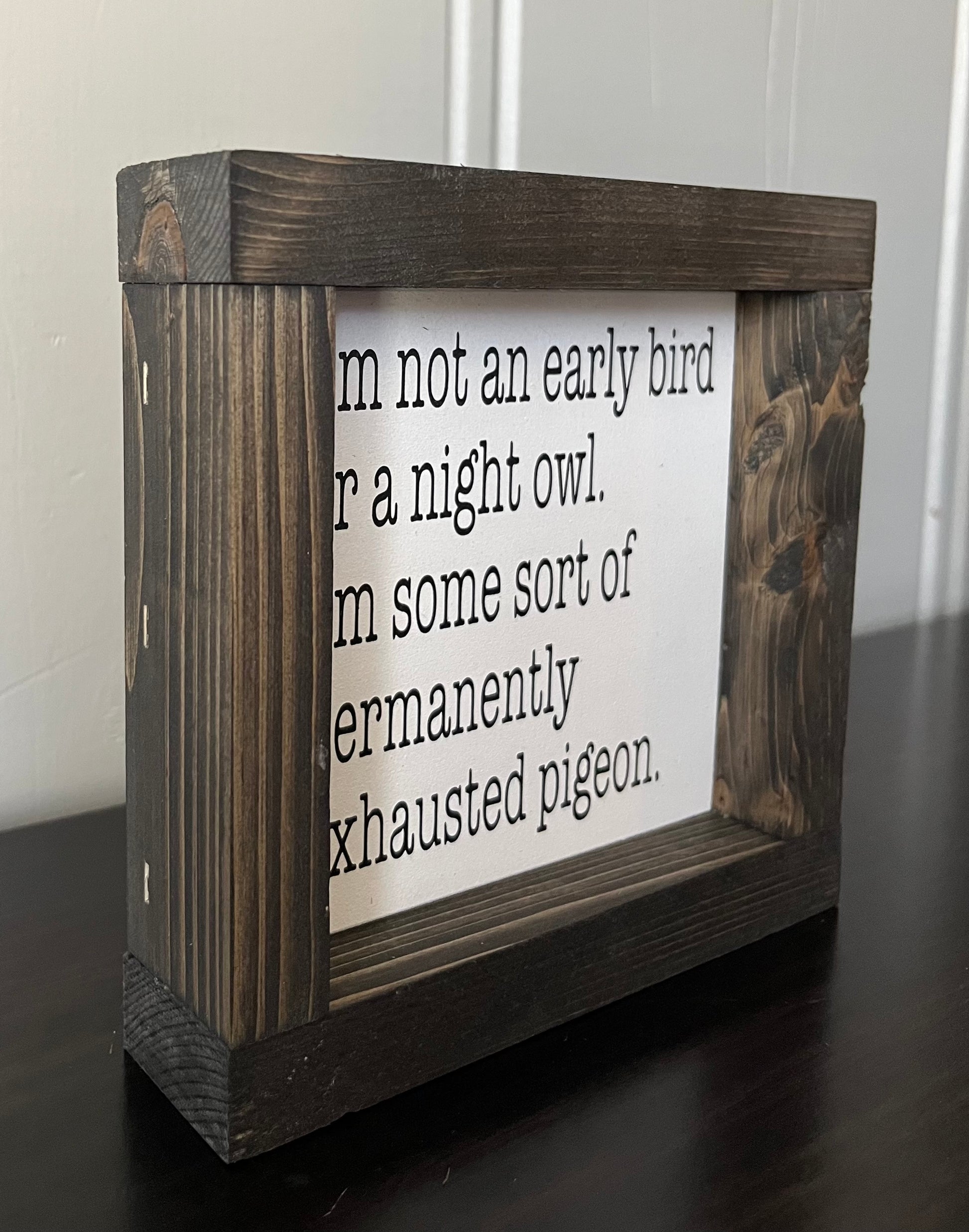 Introducing our exquisite handmade picture hanger, "Exhausted Pigeon" Crafted with care, this stained measures 6 x 6" Ideal for showcasing your precious moments, this piece is designed to be unforgettable.