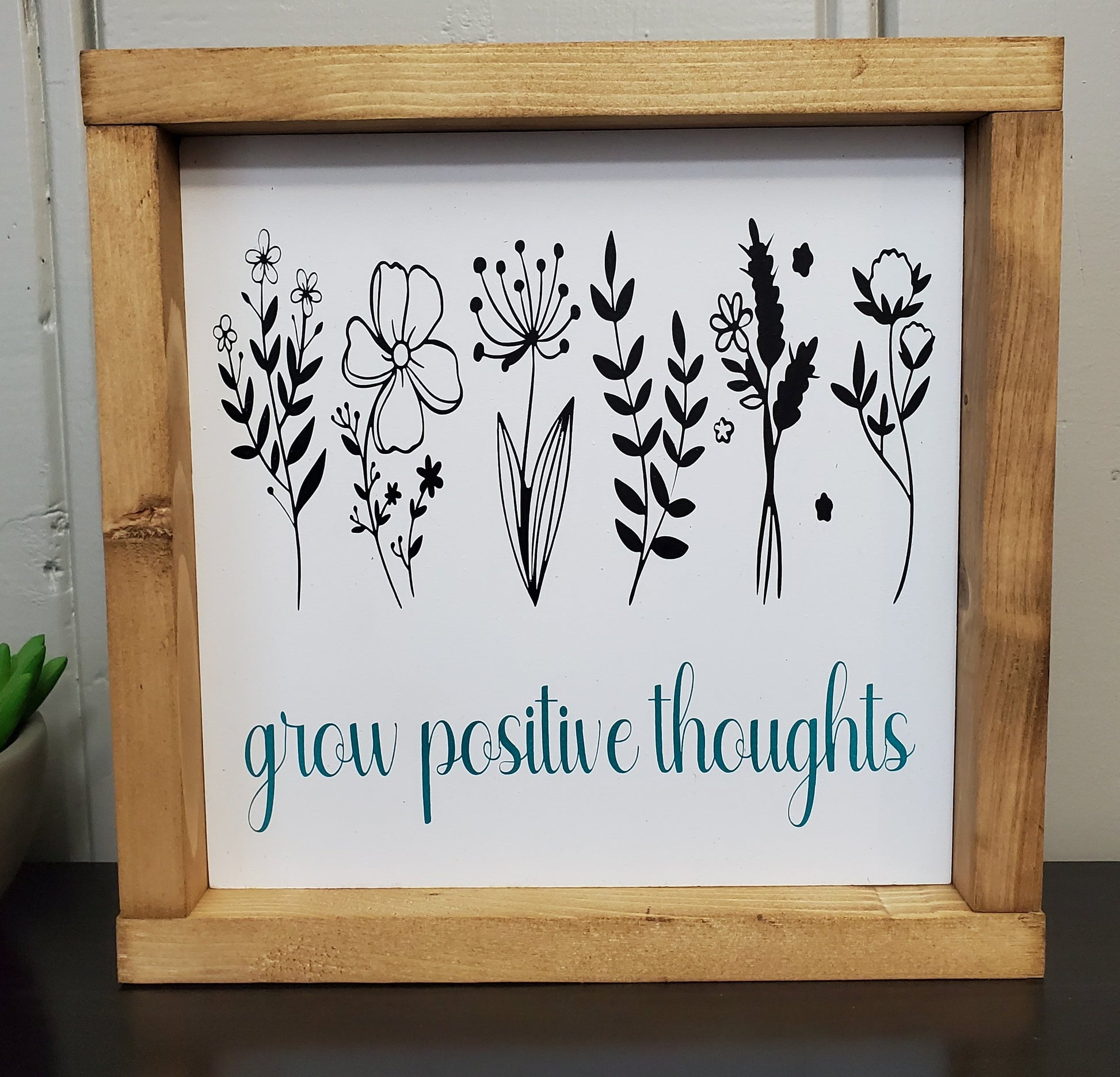 Introducing our exquisite handmade picture hanger, "grow positive thoughts." Crafted with care, this beauty measures 8" x 8" With a convenient sawtooth hanger on the back, it's effortlessly ready to grace your walls. Ideal for showcasing your precious moments, this piece is designed to be unforgettable.