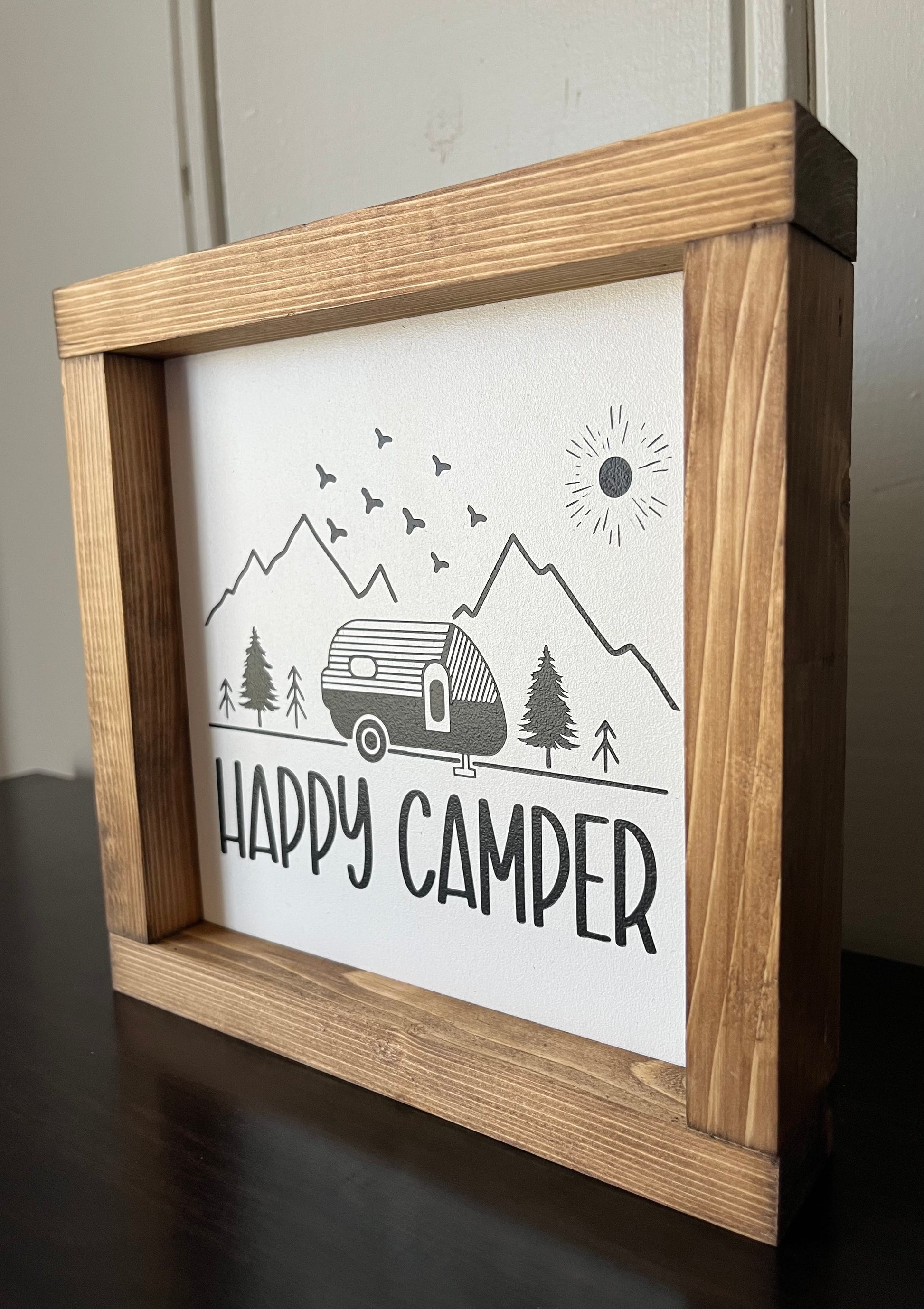 Add a touch of personality to your home with the Happy Camper 8" handmade sign. Hang it easily with the included sawtooth hanger. Perfect for any happy camper!
