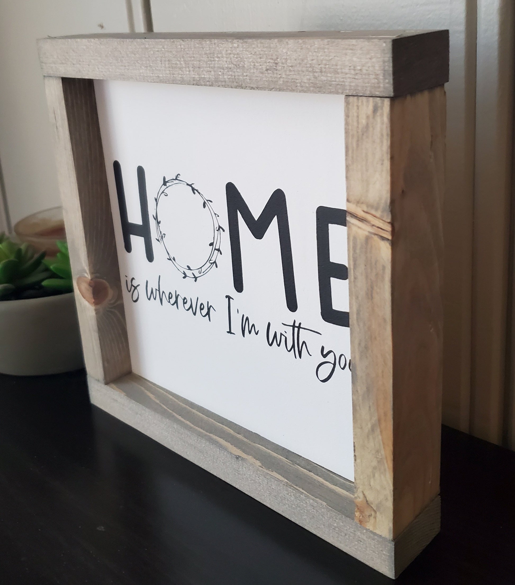 Home is wherever I am with you. 8.5 x 8.5 Stained classic grey