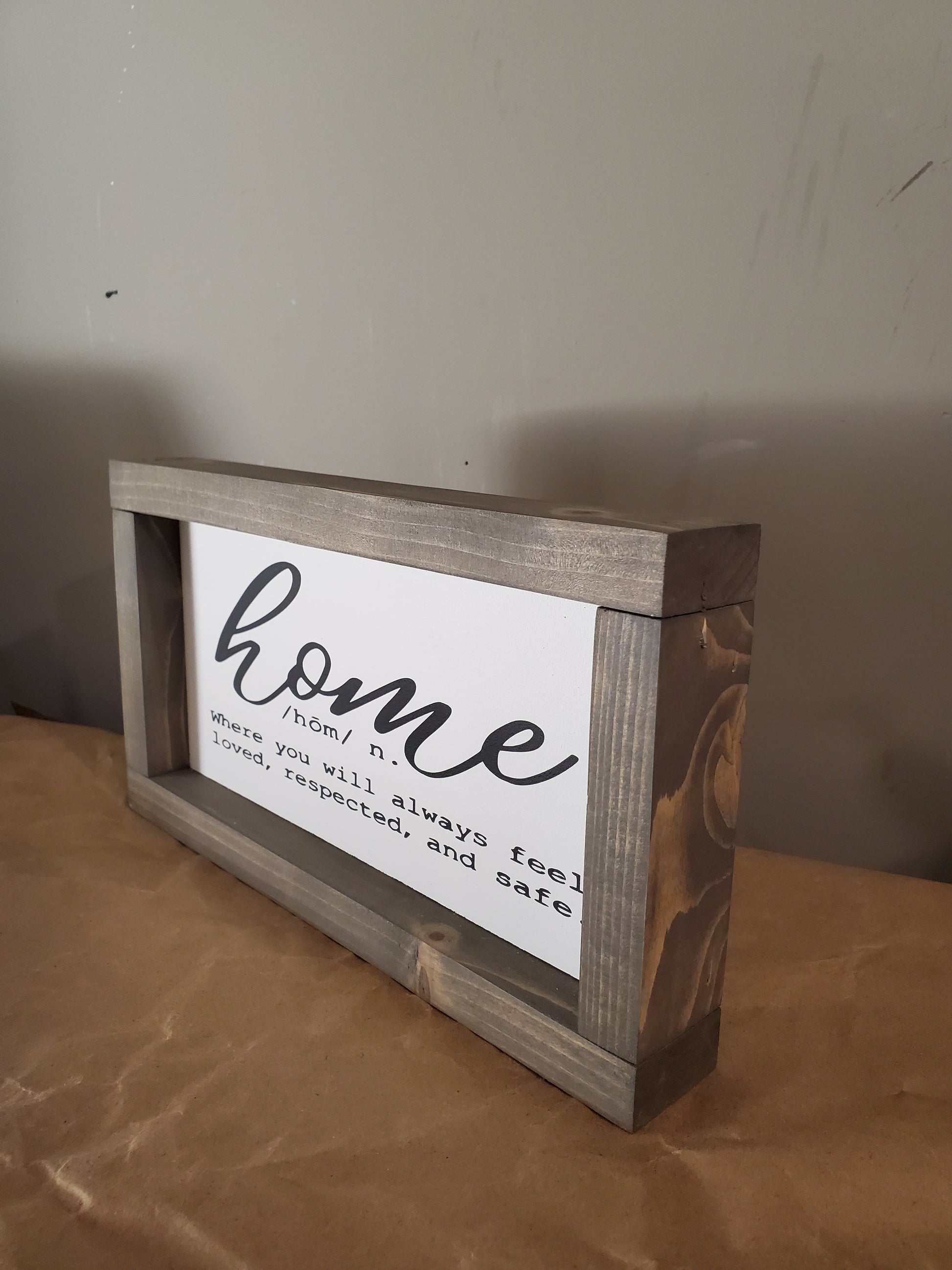 Home Sign -Weathered grey. 6 x 10.5" Comes with a sawtooth hanger on the back.