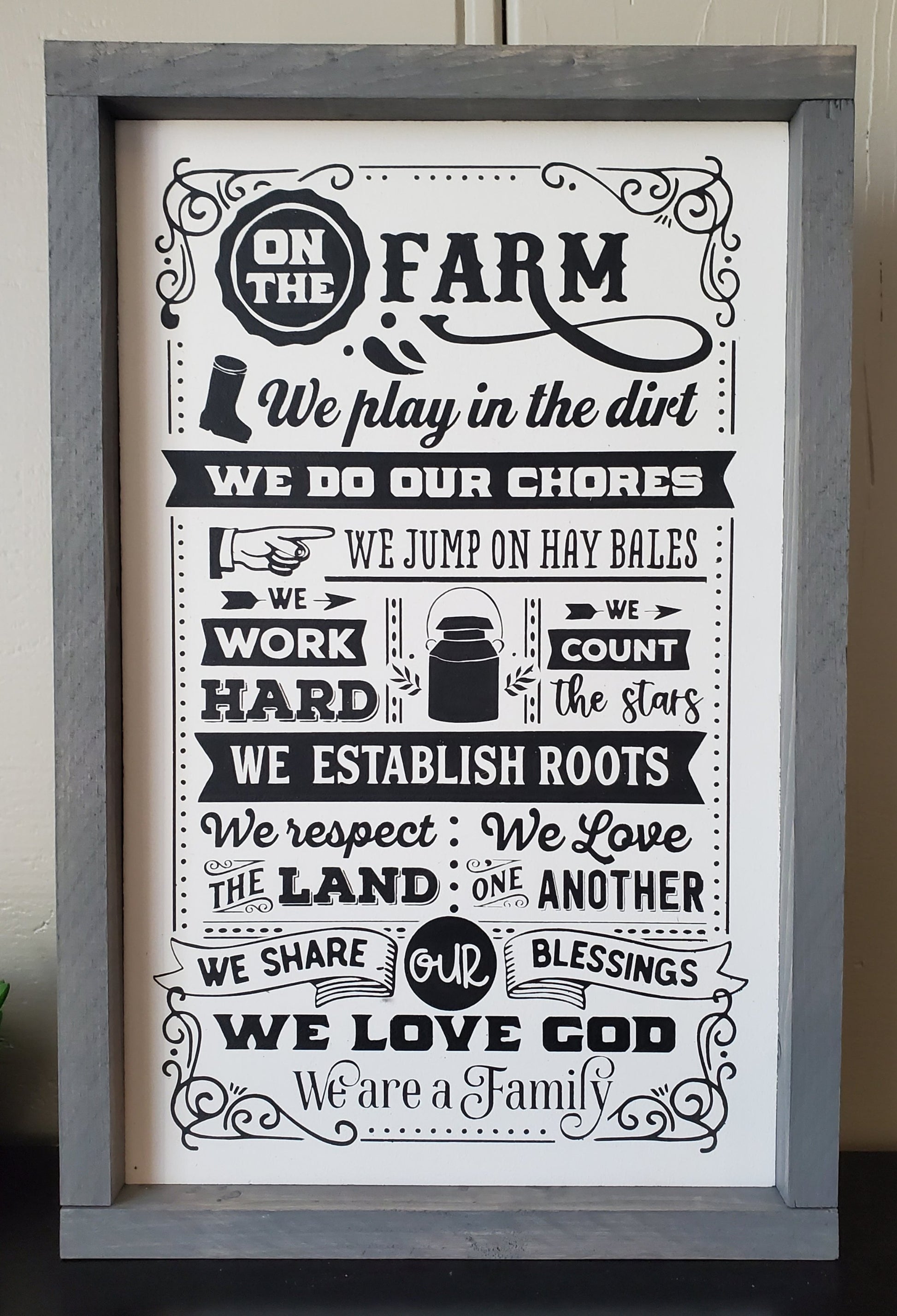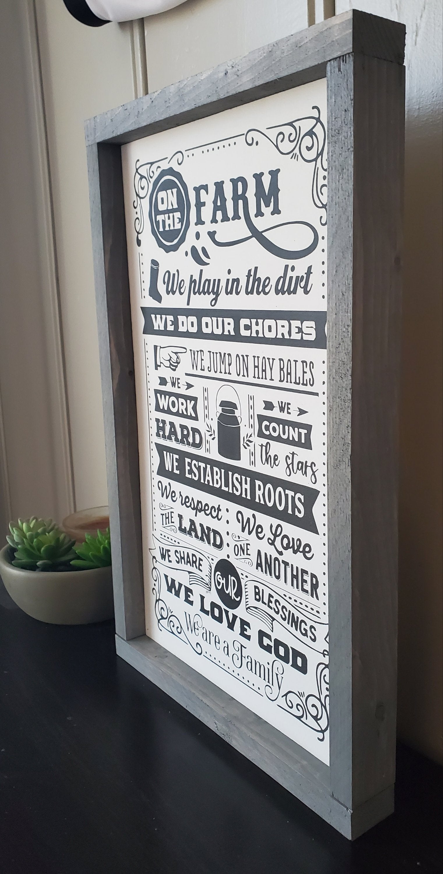 On the farm -Rules. 12 x 16" Stained weathered grey.