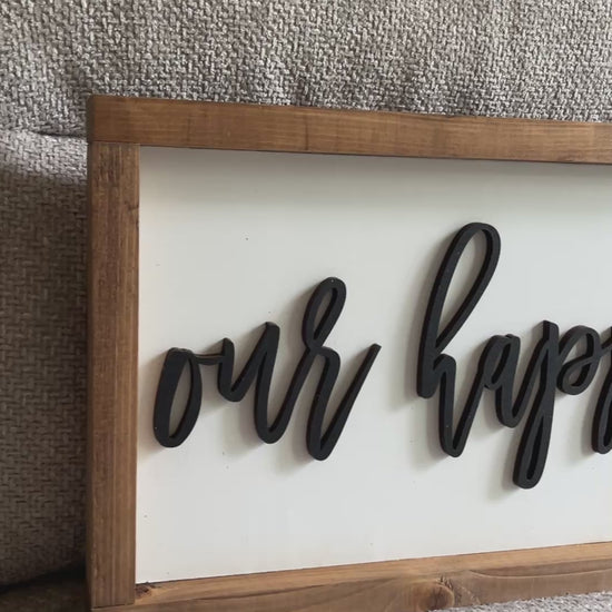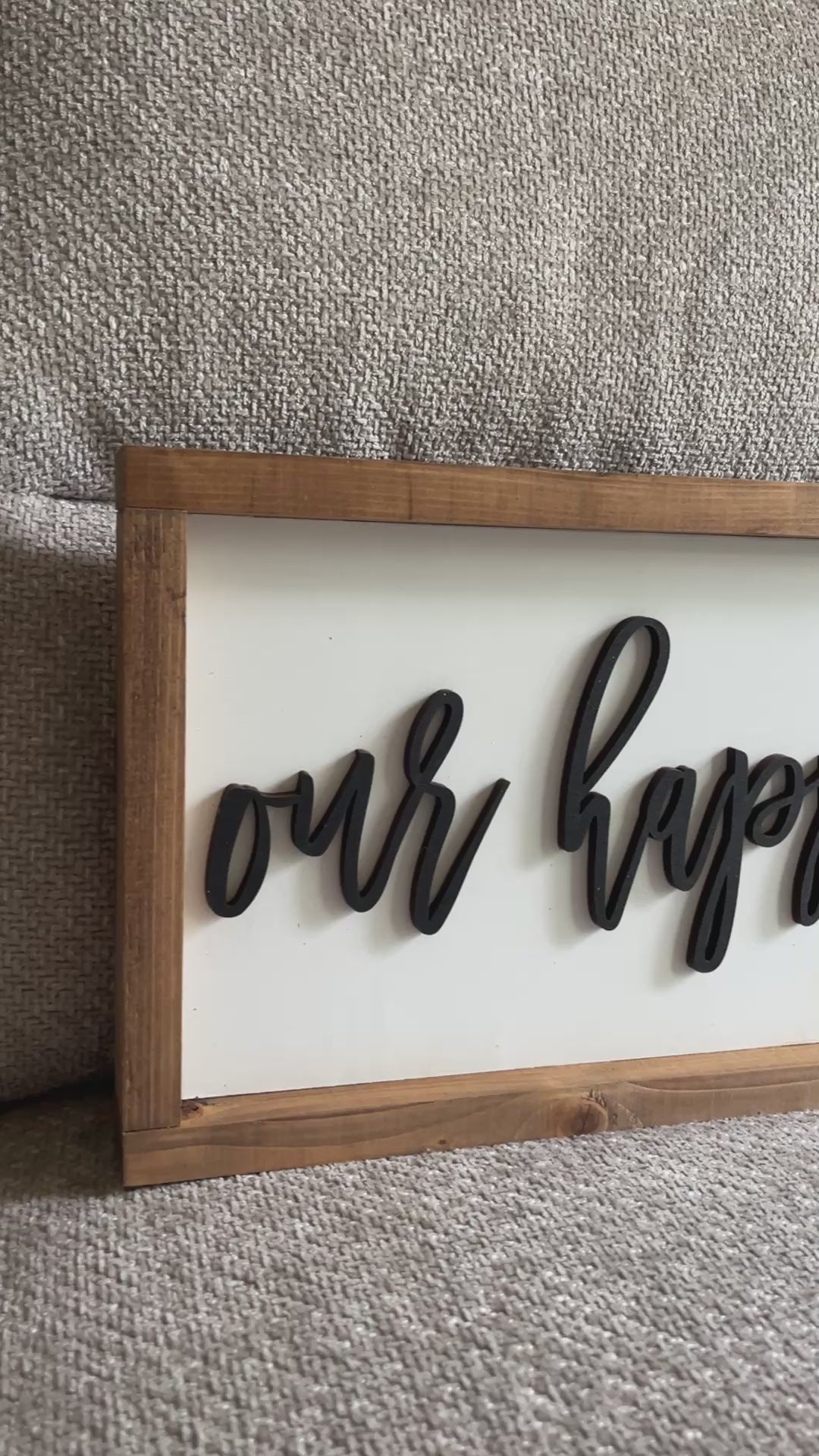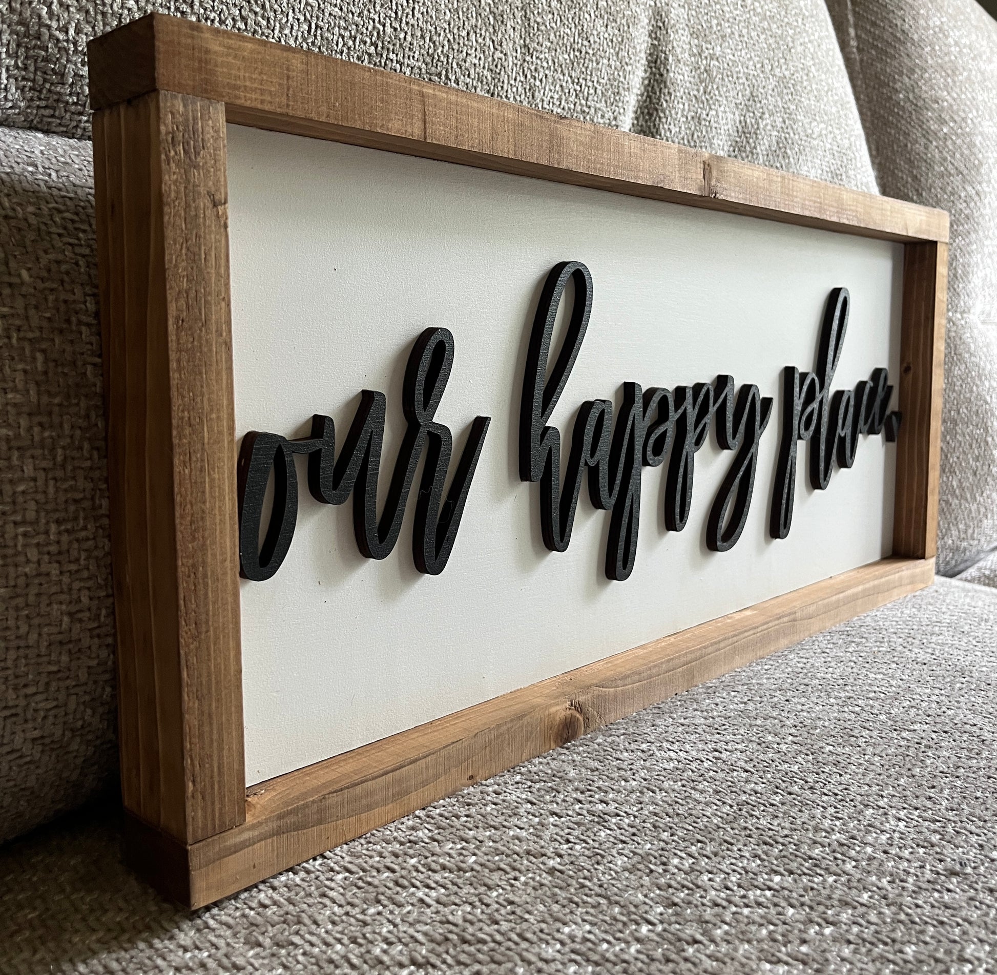 Bring joy to your favorite spot with this 9.5" x 21.5" "Our Happy Place" wood lettering. Expertly laser-cut and beautifully stained, it adds a warm, inviting touch to any room. Ready to hang right out of the box with a sawtooth hanger on the back, it’s the perfect playful accent to celebrate your happy space.
