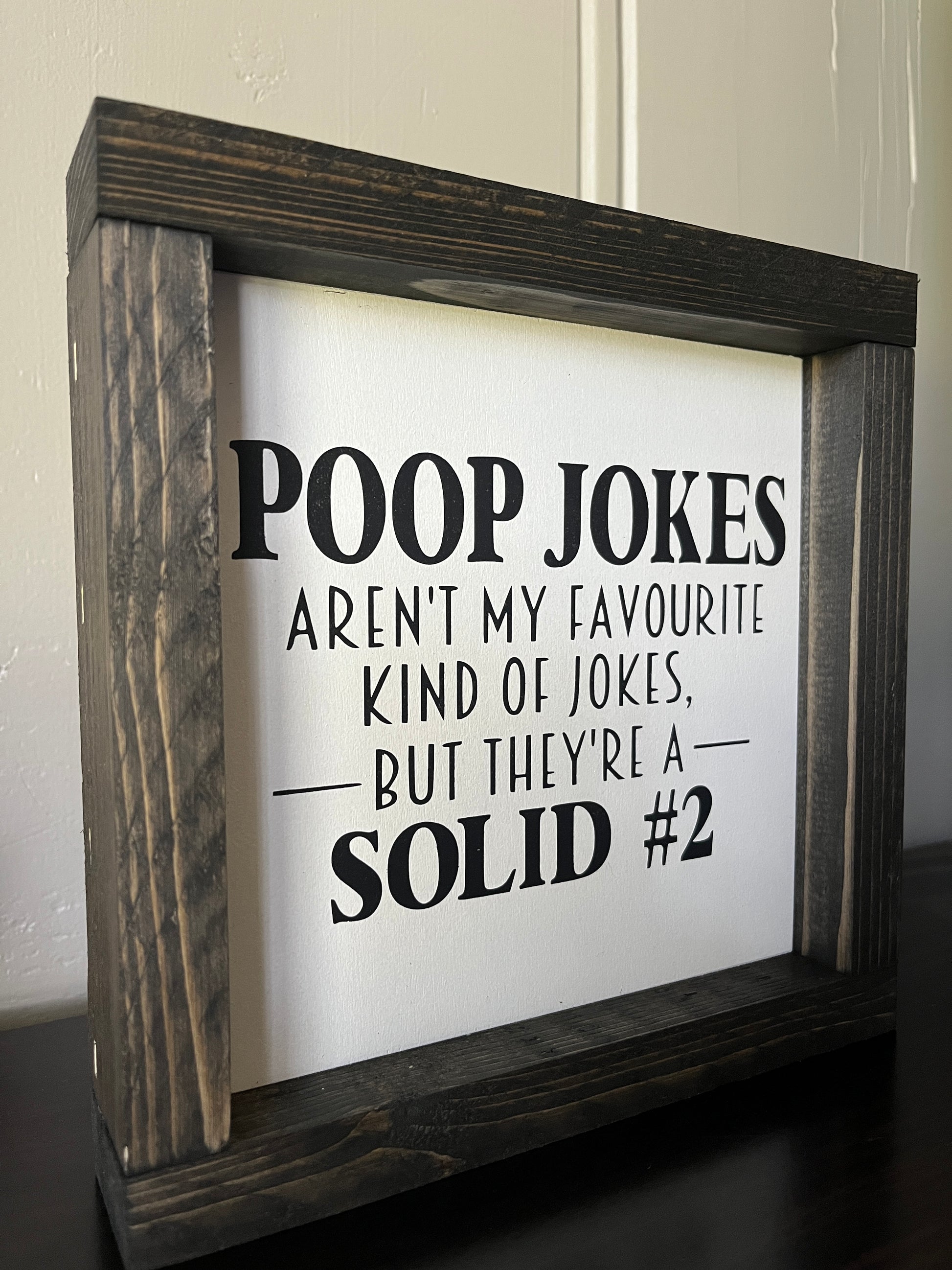 I may not love poop jokes, but they're definitely up there at # 2. This 8" handmade sign even has a sawtooth hanger (so you can proudly display it).