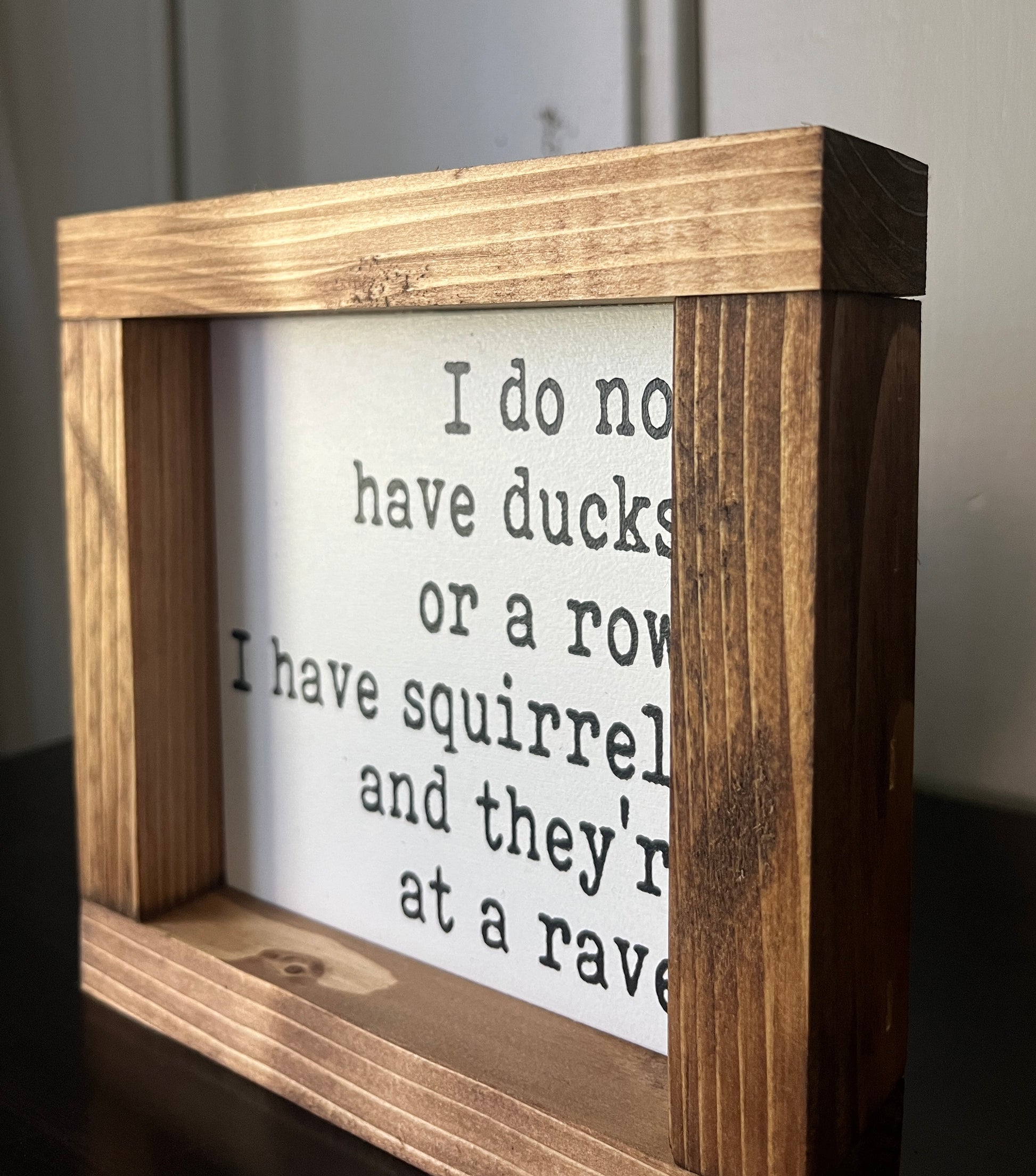 Get ready to party with our Squirrels -Rave 6" handmade sign. These squirrels are wild and ready to rave, measuring at 6" x 6". Hang them up at your next party for a unique and quirky touch. No actual squirrels included.