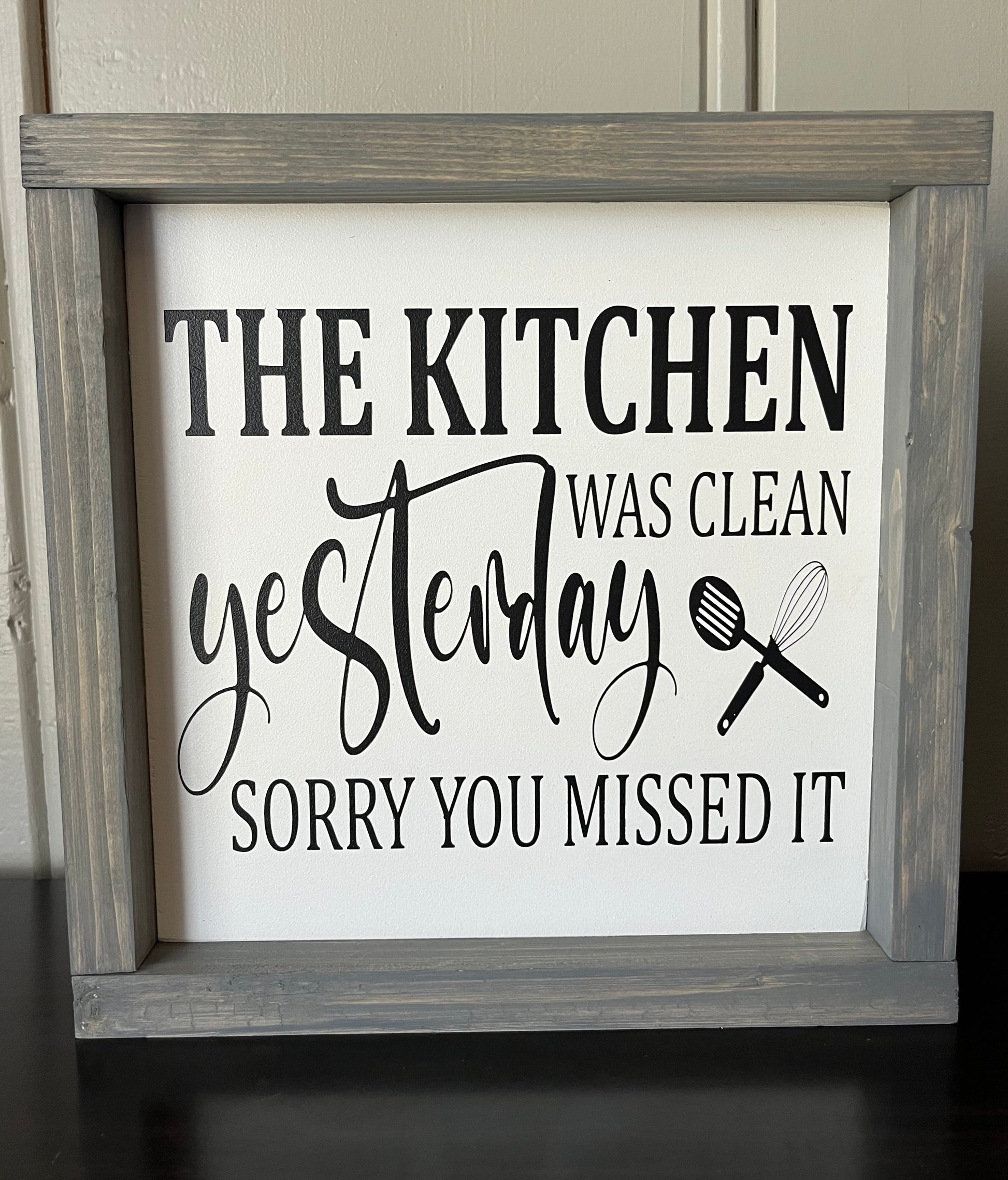 Stay reminded of yesterday's clean kitchen (sorry you weren't there) with this quirky 10 x 10" sign. Includes sawtooth hanger for easy hanging.
