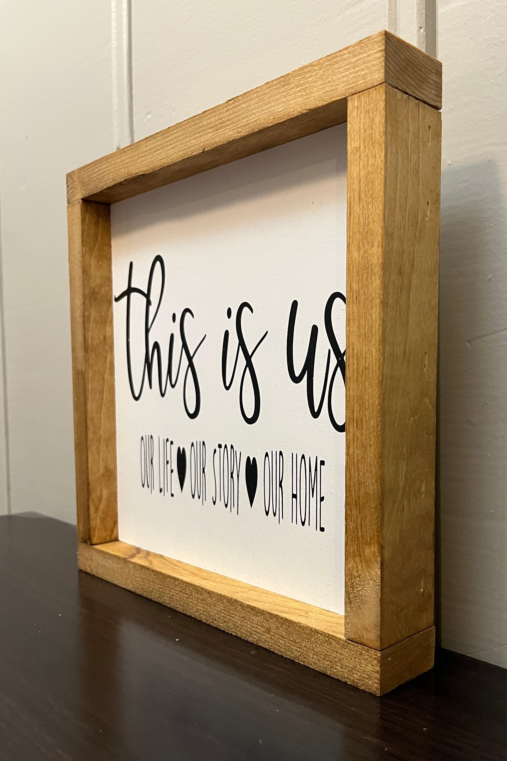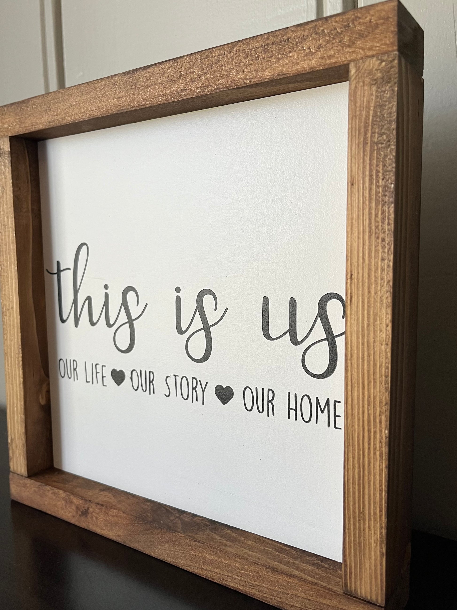 Welcome to our cozy home! This handmade 10" sign is a daily reminder of our unique story. With a sturdy sawtooth hanger, it's ready to hang and add a touch of warmth to any room. Come join our journey with "This is us".