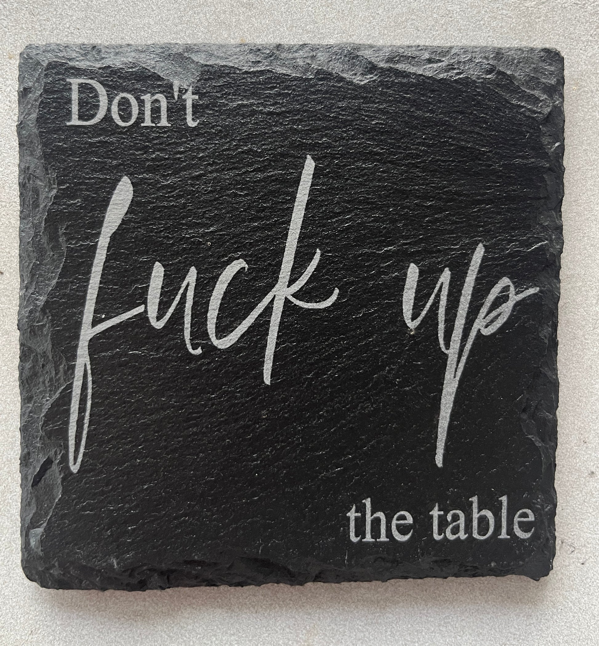 This playful 4" x 4" slate coaster features a charming engraved design, perfect for adding a touch of fun to your drinkware while protecting your surfaces. Use a f***king coaster.