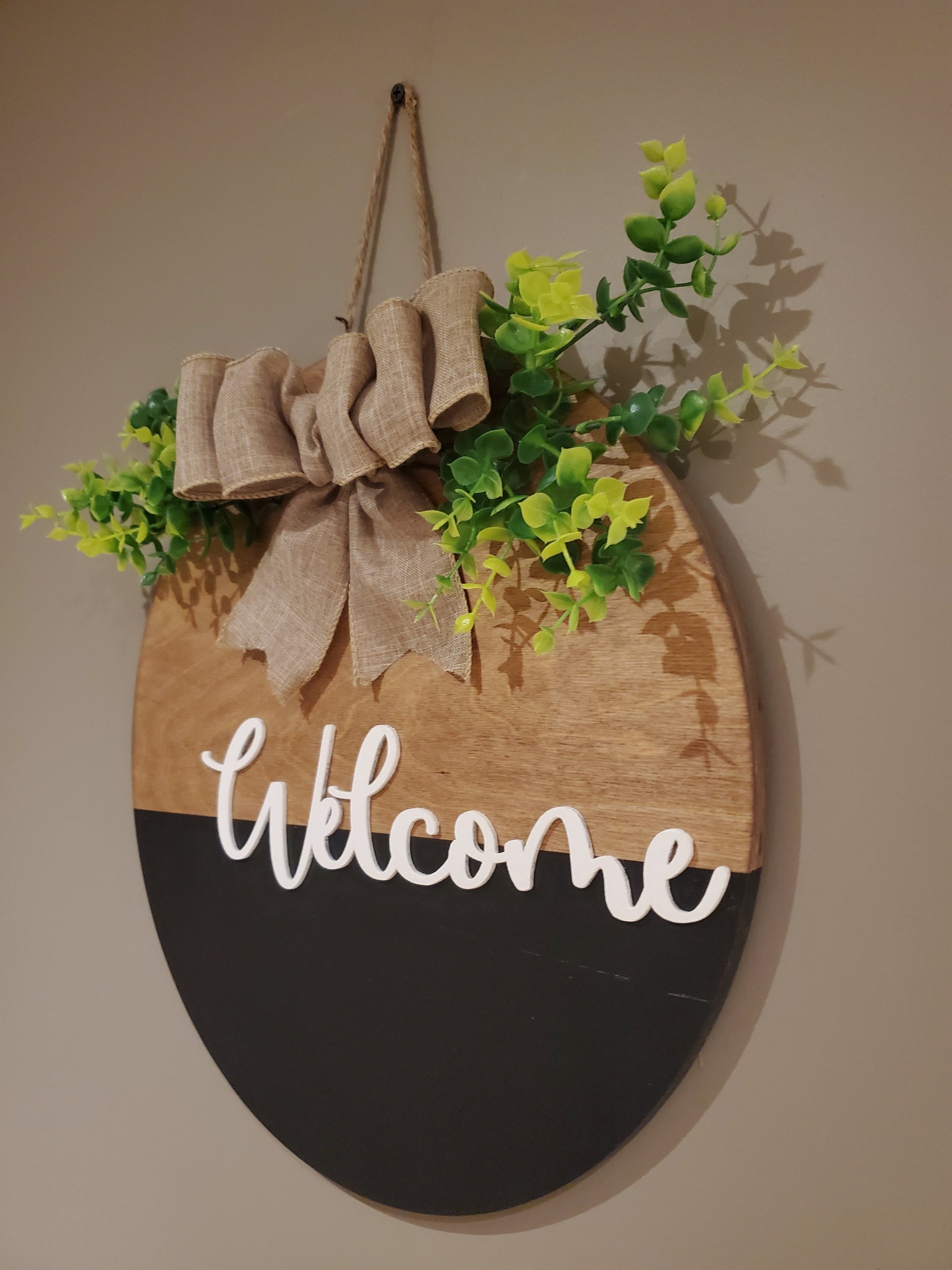 14" 3D wood welcome door hanger. Sealed for outdoor weather